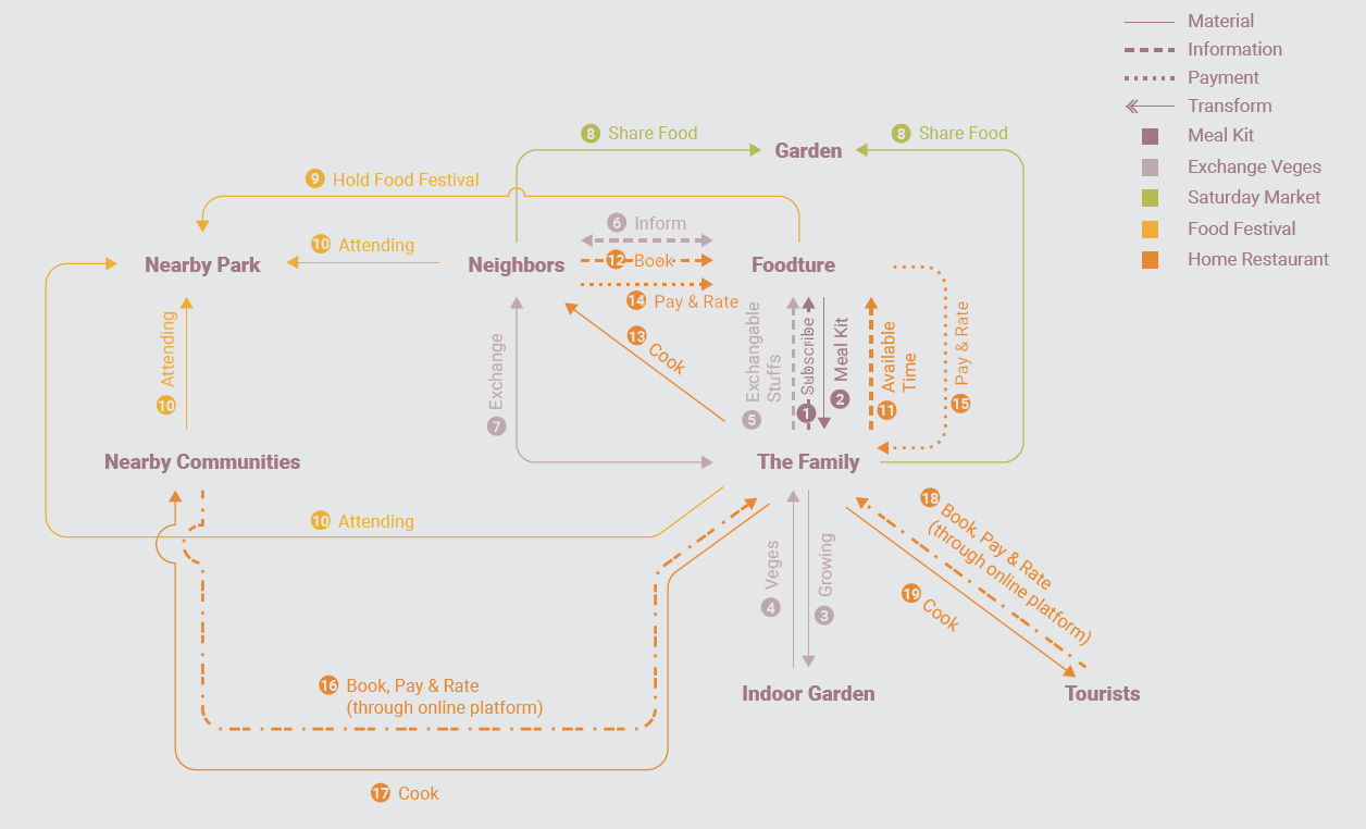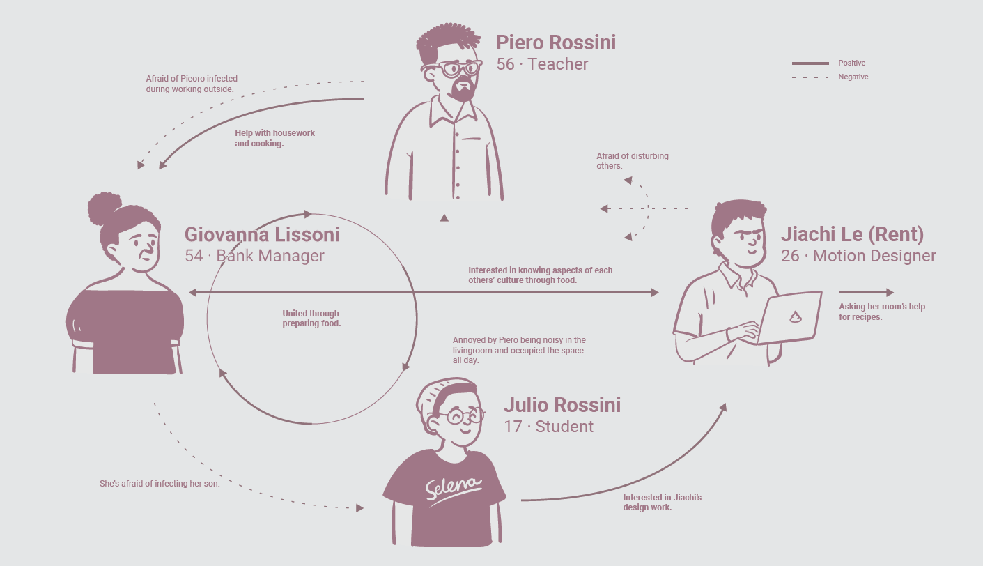 The distance between the family members is shortened, even if they live apart. While having a video call, for instance, you feel the others’ warmness and indeed fight the solitude due to the quarantine. Diffused activities take place in the house, condominium, neighborhood and city, centralizing the food system. A circular structure composed of the main steps of cultivating, sharing, cooking and eating spread a sustainable concept of food and lifestyle.